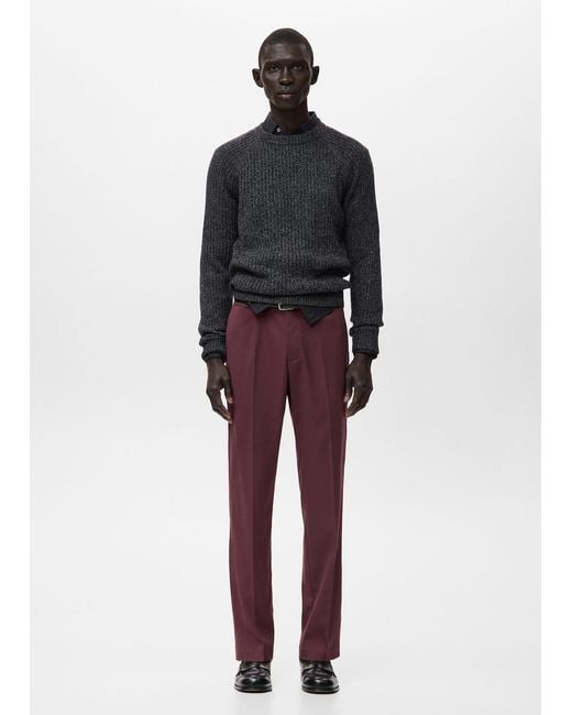 Regular fit, Cotton blend fabric, Ironed stripe detail at front and back, Two side pockets, Two flap and button pockets on the back, Belt loops, Zip and button closure