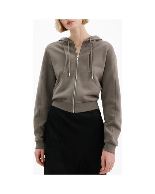 Seam details lend a modern, sculptural look to this slightly cropped, zip-up hoodie made from cotton terry in a versatile neutral hue. Color: gray