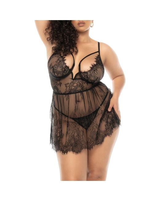 - Underwire Eyelash Lace Babydoll & G-String Set