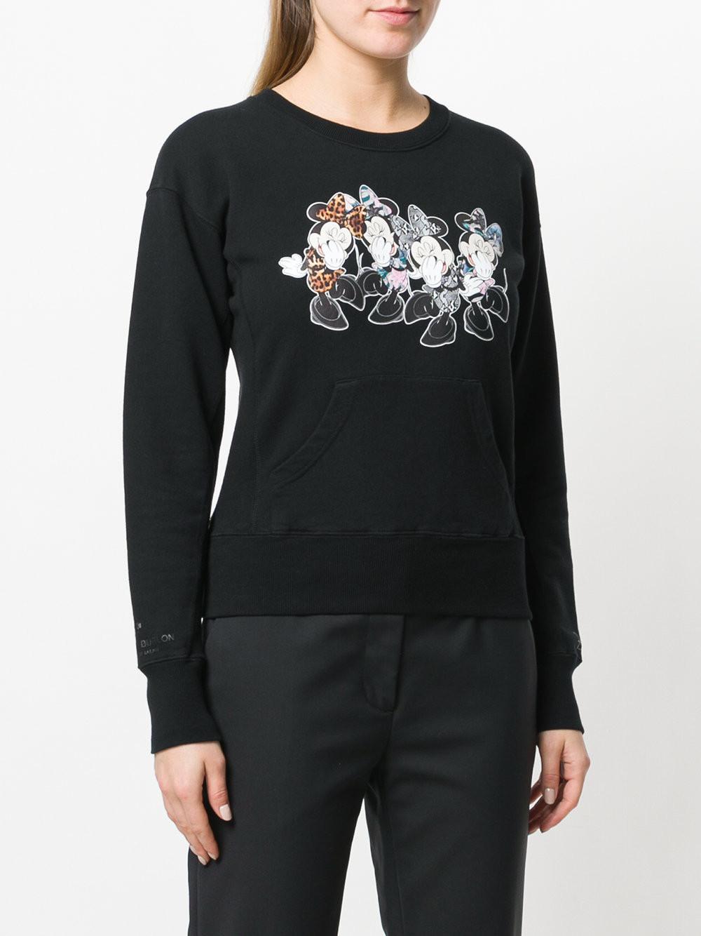 Black cotton minnie mouse sweatshirt from Marcelo Burlon County of Milan featuring a round neck, long sleeves and a relaxed shape. 100% cotton. Model wears a size XS. True to size. Made in Italy.