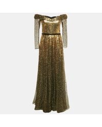 Marchesa Women's Blue Sequined Strapless Silk Tulle Gown