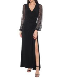 Go to Nordstrom RackGlimmering beaded sleeves and subtle gathers at the waist offer an elegant touch to this evening-ready gown. 59" length (size 4) Bateau neck Long sleeves Hidden back zip closure Lined 95% polyester, 5%