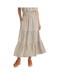 Marine Layer Women's Brown Elena Windowpane Plaid Smocked Yoke Top