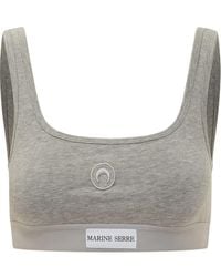 Marine Serre Women's White Logo-patch Scoop-neck Cotton Bra
