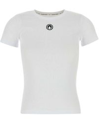Go to FARFETCHWhite stretch organic cotton pullover design two flat shoulder straps scoop neck embroidered crescent moon motif logo patch to the front straight hem elasticated hem cropped This item is made from at least 50% organic materials. Material:Organic Cotton/Elastane. Color: white