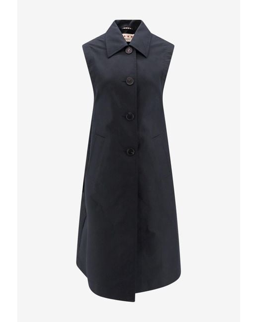 Single-Breasted Sleeveless Trench Coat - Blue