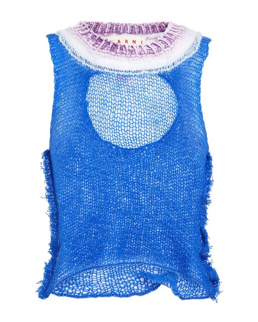 Top, open-knit, velvet, lightweight knit, multicolor, no appliqués, crewneck, sleeveless, hand wash or dry clean, do not tumble dry, this brand runs large , Color: Blue , Size: 4