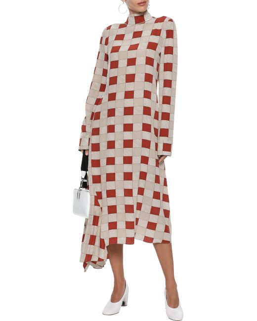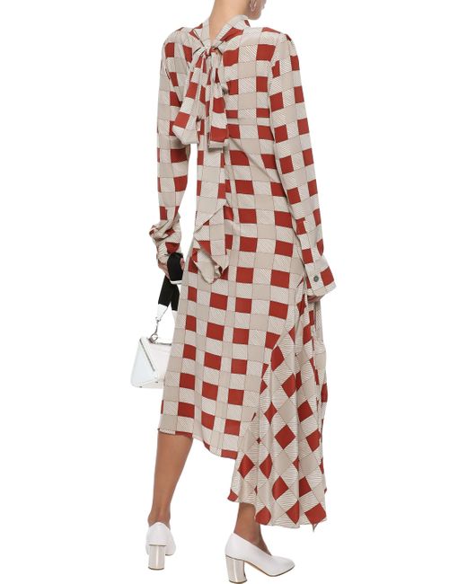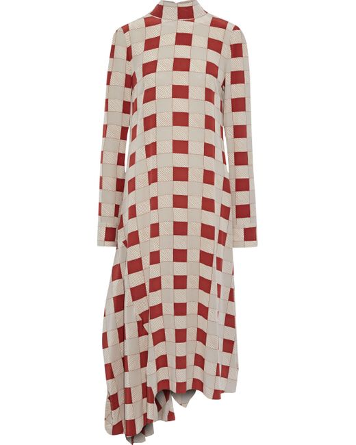 Women's Asymmetric Checked Silk Midi Dress Neutral