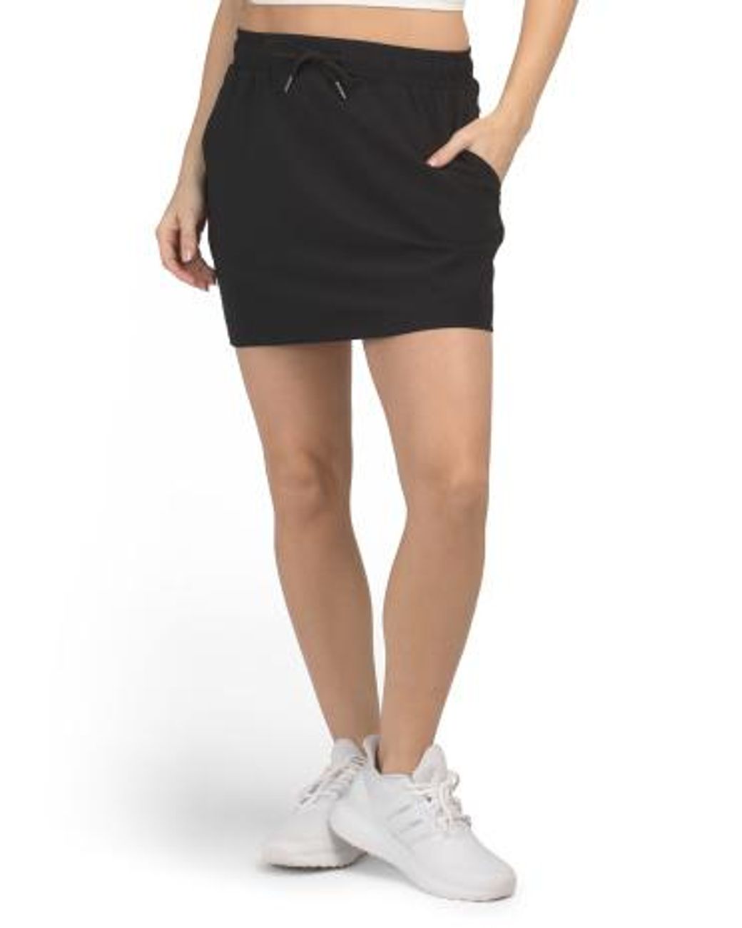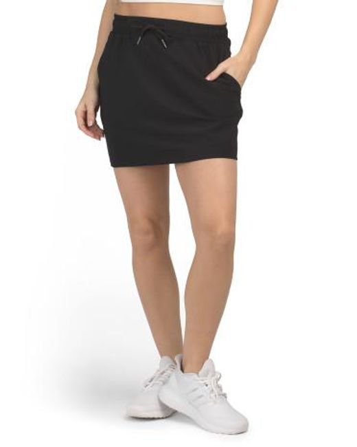 Elastic Drawstring Waist, 2 Front Pockets, Breathable, Fabric Provides Stretch, Pull On, 15.5In Long, Taken From Size S, Mini Skirt, Polyamide/elastane, Imported | Explorer Mini Skirt for Women | Elastane Color: black