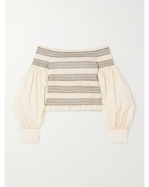 - Walk Off-The-Shoulder Smocked Cotton Top