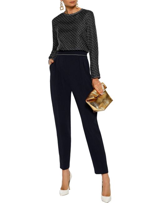 Vettura Metallic-trimmed Cady Tapered Pants Midnight Blue