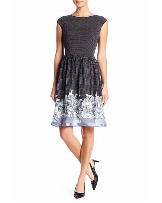 - Smocked Fit & Flare Polka Dot Floral Hem Chiffon Midi Dress
