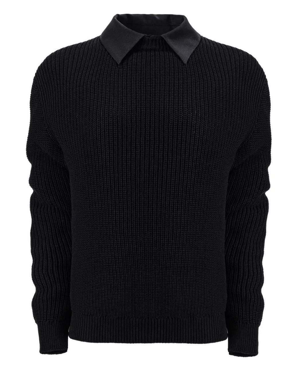 Black cotton point collar long sleeves ribbed knit Size: S. Gender: Unisex. Material:Cotton. Color: black