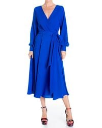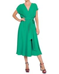 Go to Wolf & BadgerThis gorgeous and versatile midi dress has an effortless pleated surplice front bodice that gathers at an elasticized empire waist. The wide kimono-inspired shaped sleeves to add unexpected drama. This striking midi dress