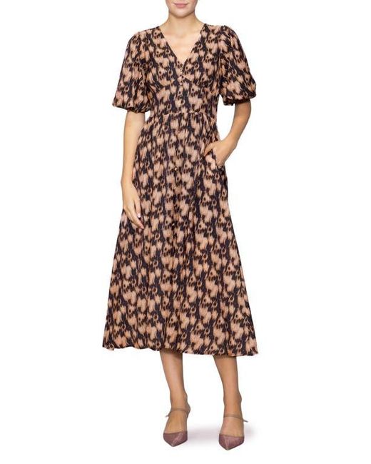 Women's Bubble Sleeve Fit & Flare Midi Dress