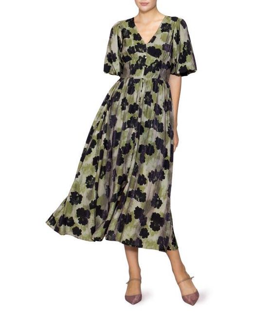 Women's Green Bubble Sleeve Fit & Flare Midi Dress