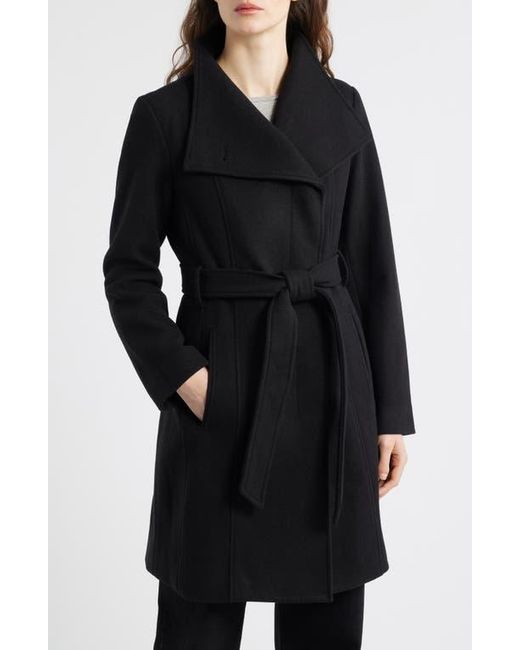 An oversize collar dials up the sophisticated allure for this belted jacket designed to enhance your city style. Color: black