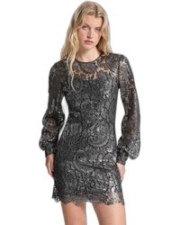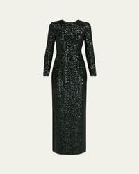 Michael Kors Women's Black Collection Lace Overlay Top Crop Sleeve Long Gown