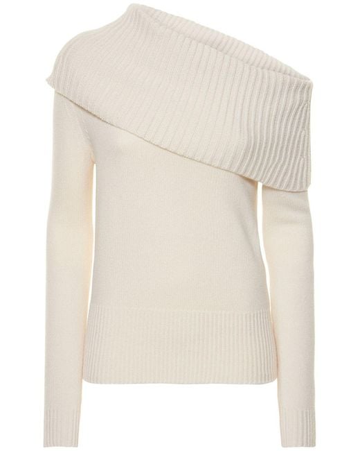 Women's Natural Elegant Sweater With Asymmetric Collar And Neckline