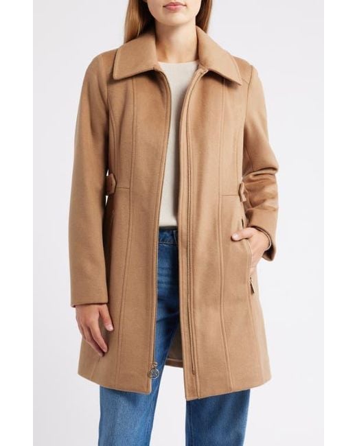This full-of-polish coat is made in a warm wool blend and accented with high-shine hardware. Color: natural