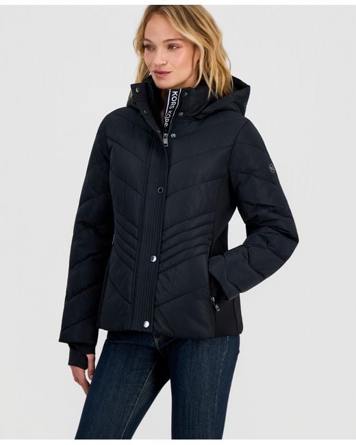 Michael Kors Michael Packable Hooded Puffer Coat in Blue | Lyst