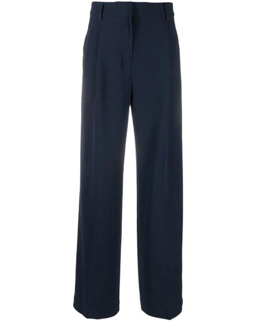 Women's Blue Straight-leg Tailored Pants