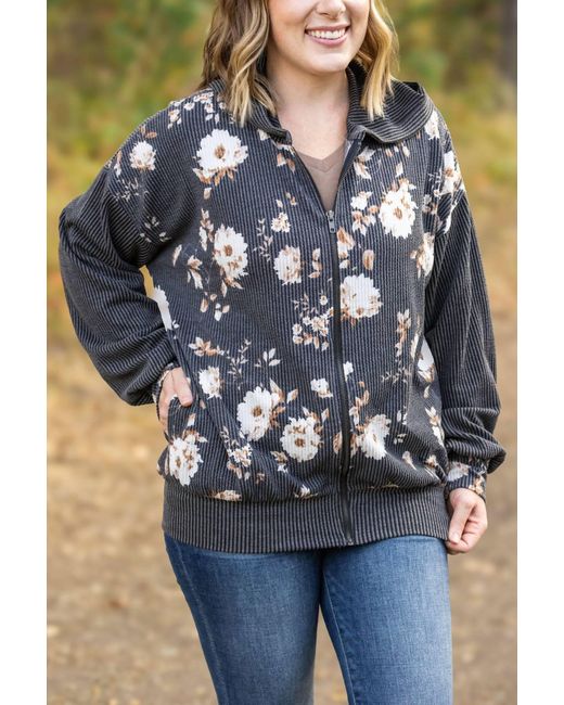 - Ramona Ribbed Floral Zip Up Hooded Bomber Jacket