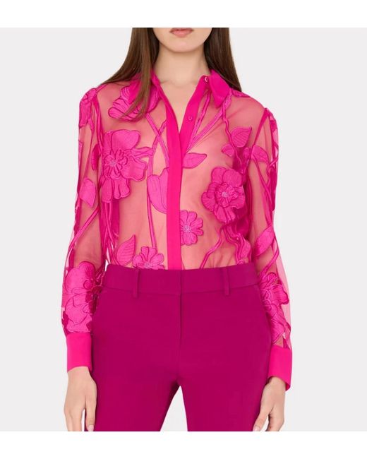 A long sleeve top you can wear with denim, skirts, well.just about anything!The Ashton Grand Fleur Embroidered Top by MILLY features elegant long sleeves and is adorned with a delightful floral pattern, perfect for a minimalist spring look. This women's top comes in a charming pink hue and is fitted with a button closure for a polished finish. Ideal for those who appreciate detail, it boasts a classy collar neckline. For best results, dry clean only to maintain its pristine condition. Color: pink