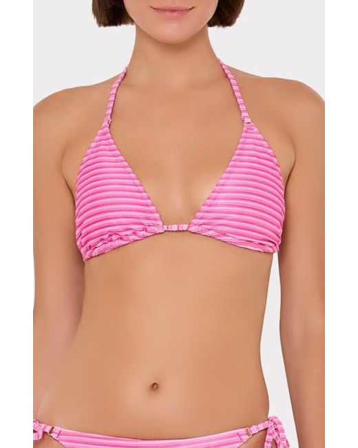 Women's Pink Metallic Stripe Triangle Bikini Top