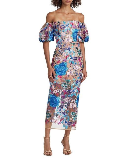 Women's Blue Nira Floral Embroidered Off-The-Shoulder Midi-Dress