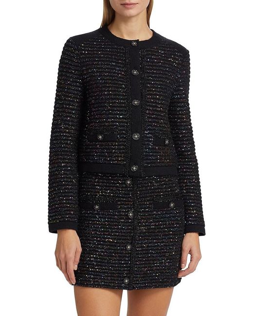 Women's Black Sequin Textured Button-front Cardigan Jacket