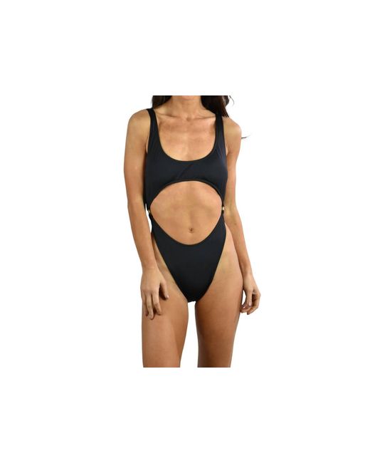 Women's Black Solid Ring Monokini One Piece Swimsuit