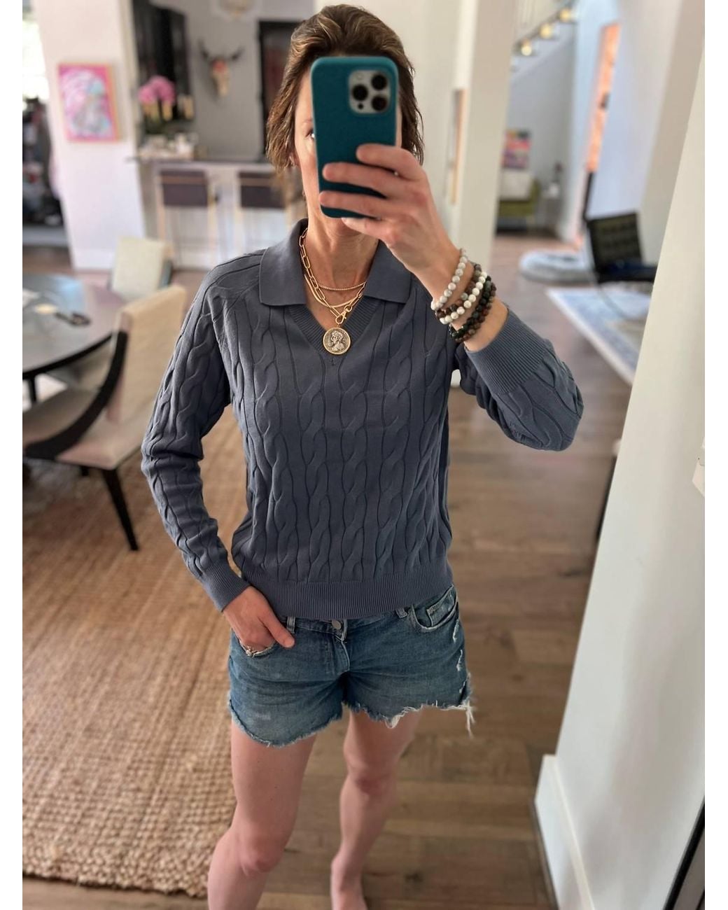 Women's Blue Cable Pullover