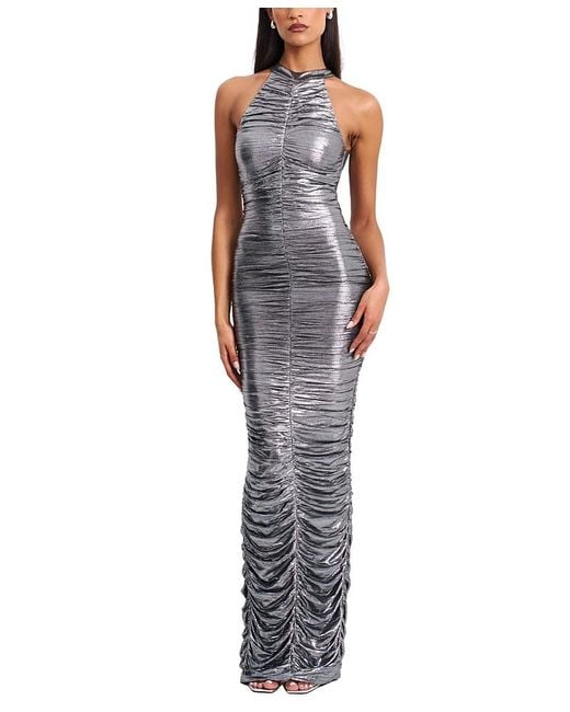 Women's Metallic Abril Ruched Glitter Backless Gown