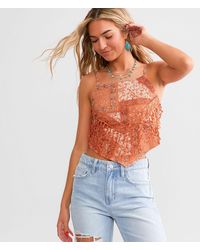 Go to BuckleOpen weave front tie v-neck tank Bead details Bust measures 30" on size small Color: blue