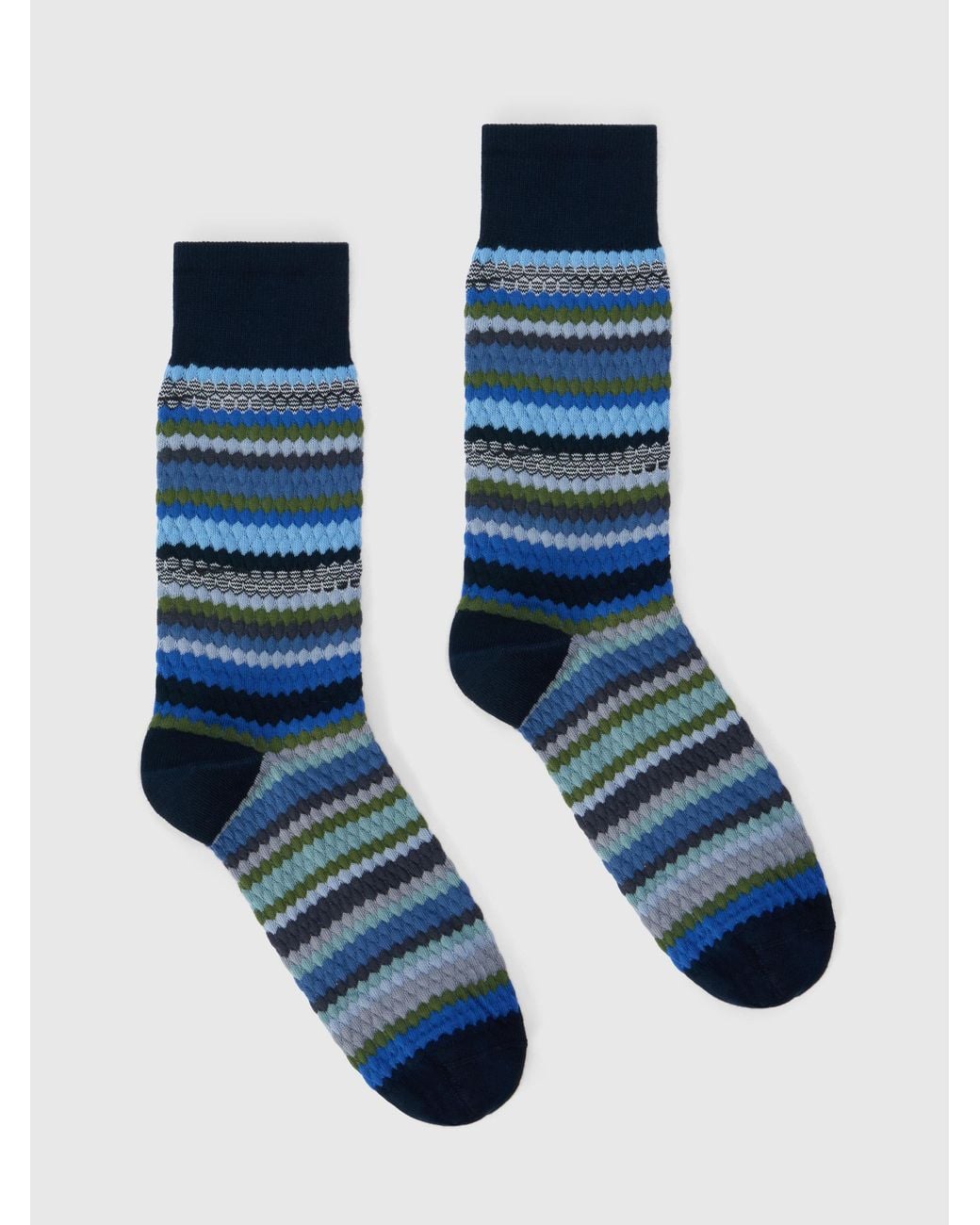 The maison’s constant experimentation with textures and patterns is expressed in these mid-length men’s socks, featuring a three-dimensional waffle design. Made from a soft and comfortable yarn, they combine material research with contemporary style. Color: blue