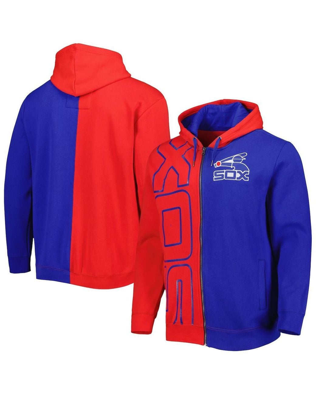 Show that cooler temperatures have no bearing on your showing of Chicago White Sox spirit by layering up with this Mitchell & Ness full-zip hoodie. It features bold, two-toned team colors with a team logo and wordmark on either side for an undeniable display of team pride. The integrated fleece lining gives this midweight hoodie an added layer of comfort, making it a strong cool-weather grab fit for any Chicago White Sox gear collection. Cotton, Polyester. Color: red