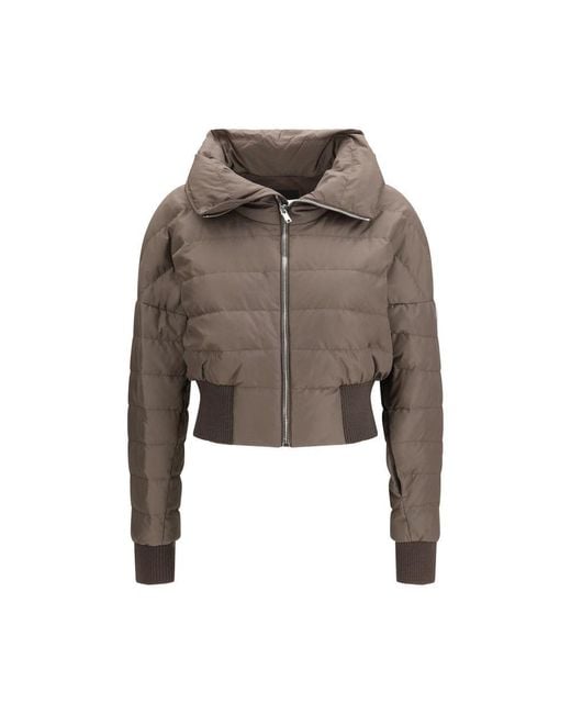The Down Jacket by Moncler + Rick Owens is a lightweight, quilted style, perfect for an elegant and functional look. The ribbed wool hem and cuffs offer comfort and a flawless fit, while the high collar adds a touch of style. The front zipper closure ensures practicality, while the iconic logo patch on the left arm gives the garment a distinctive, high-fashion detail. Season: SS26Fit: RegularComposition: OUTER 100% Polyester INNER 100% Goose Down. Color: brown