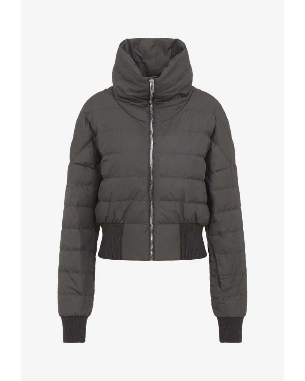 Women's Gray Cropped Down Jacket With Logo-Patch