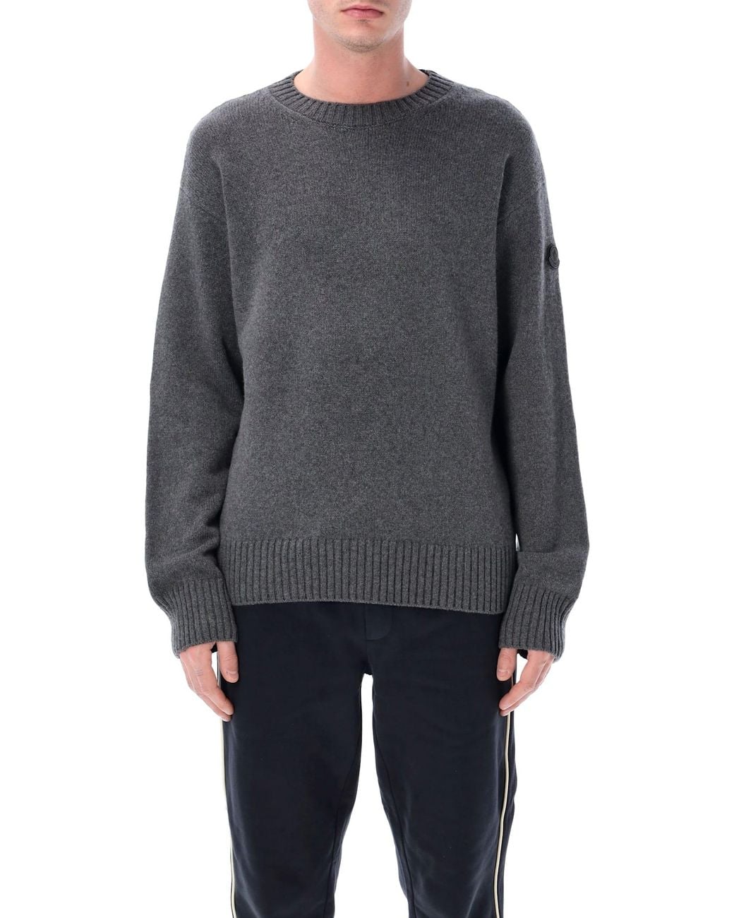 This Moncler Sweater Is Crafted From A Luxurious Blend Of Wool And Cashmere With A Classic Crewneck And Stockinette Stitch. With A Regular Fit And Mid-weight Knit, It Layers Effortlessly Over Both Workwear And Casual Pieces, Combining Elegance, Comfort, And Iconic Moncler Style. Regular Fit Crewneck Stockinette Stitch Wool And Cashmere Blend Leather Logo Patch Andrea Is 1,90 M And Wears Size XlComposition: 90% virgin wool, 10% cashmere Color: gray