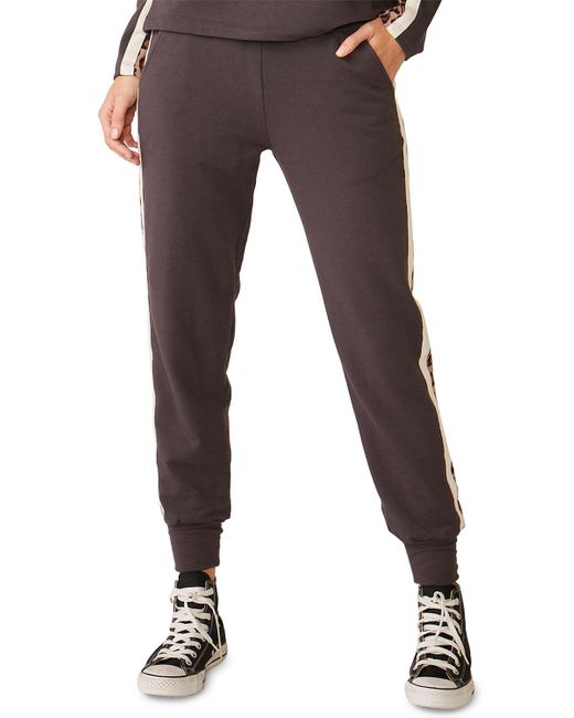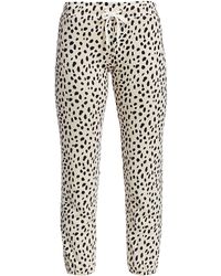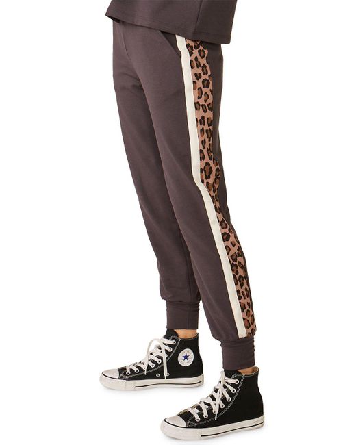 Monrow sweatpants with leopard-print panels. Banded waist. Side pockets. Relaxed skinny legs. Banded cuffs. Ankle length. Pull-on style. Cotton/modal/spandex. Made in USA.