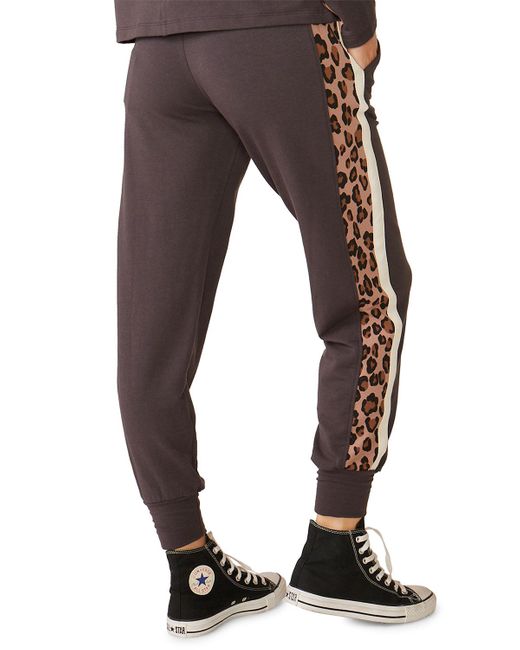 Monrow sweatpants with leopard-print panels. Banded waist. Side pockets. Relaxed skinny legs. Banded cuffs. Ankle length. Pull-on style. Cotton/modal/spandex. Made in usa. Color: black