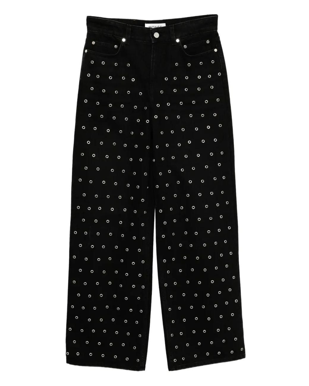 Dégradé Bleached Studded Wide Leg Jeans - Blue