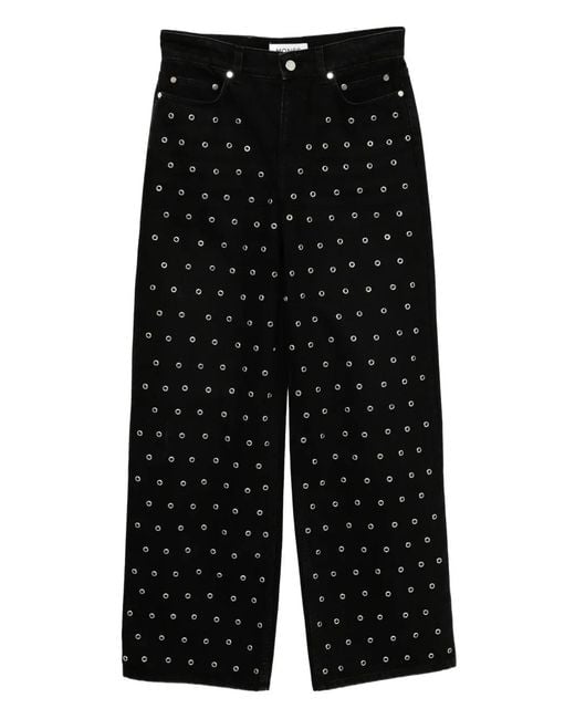 Embroidered Five-Pocket Wide-Leg Jeans - Blue