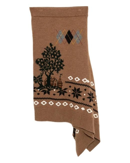 Women's Brown Fair Isle Midi Skirt