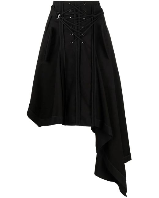 Black cotton high waist front lace-up fastening pleat detailing handkerchief hem Size: 0. Gender: Female. Material:Cotton.