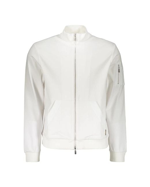 Stay stylish and comfortable with this Moorer Ribbed Collar Full-Zip Sweatshirt, designed for versatility and everyday wear. Featuring a ribbed collar and edges, this sweatshirt offers a unique blend of materials for ultimate comfort. Key attributes: White | Viscose | Elastane | Polyamide | Two front pockets | Ribbed collar | Full-zip closure | Dimensions & fit: Regular fit | Composition & care: 56% Viscose | 26% Elastane | 8% Elastane | 36% Polyamide | 74% Polyamide | Machine wash cold, tumble dry low. Color: white
