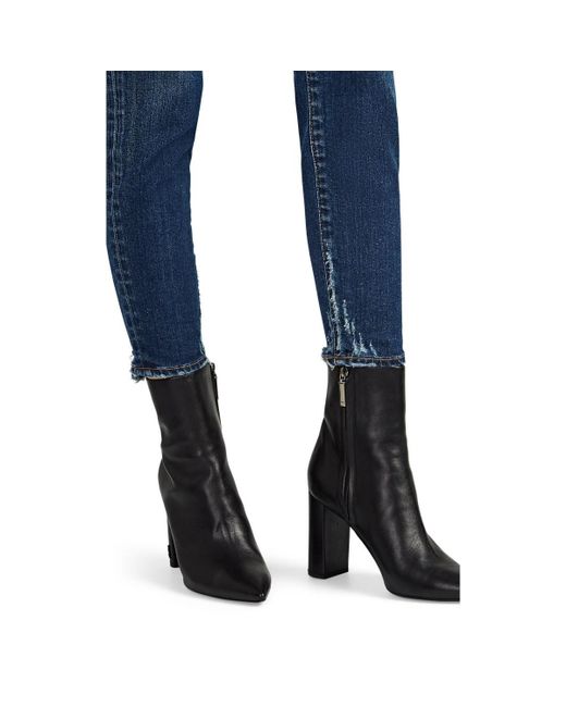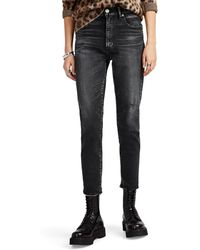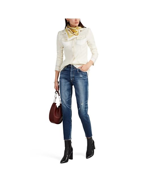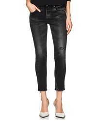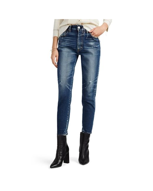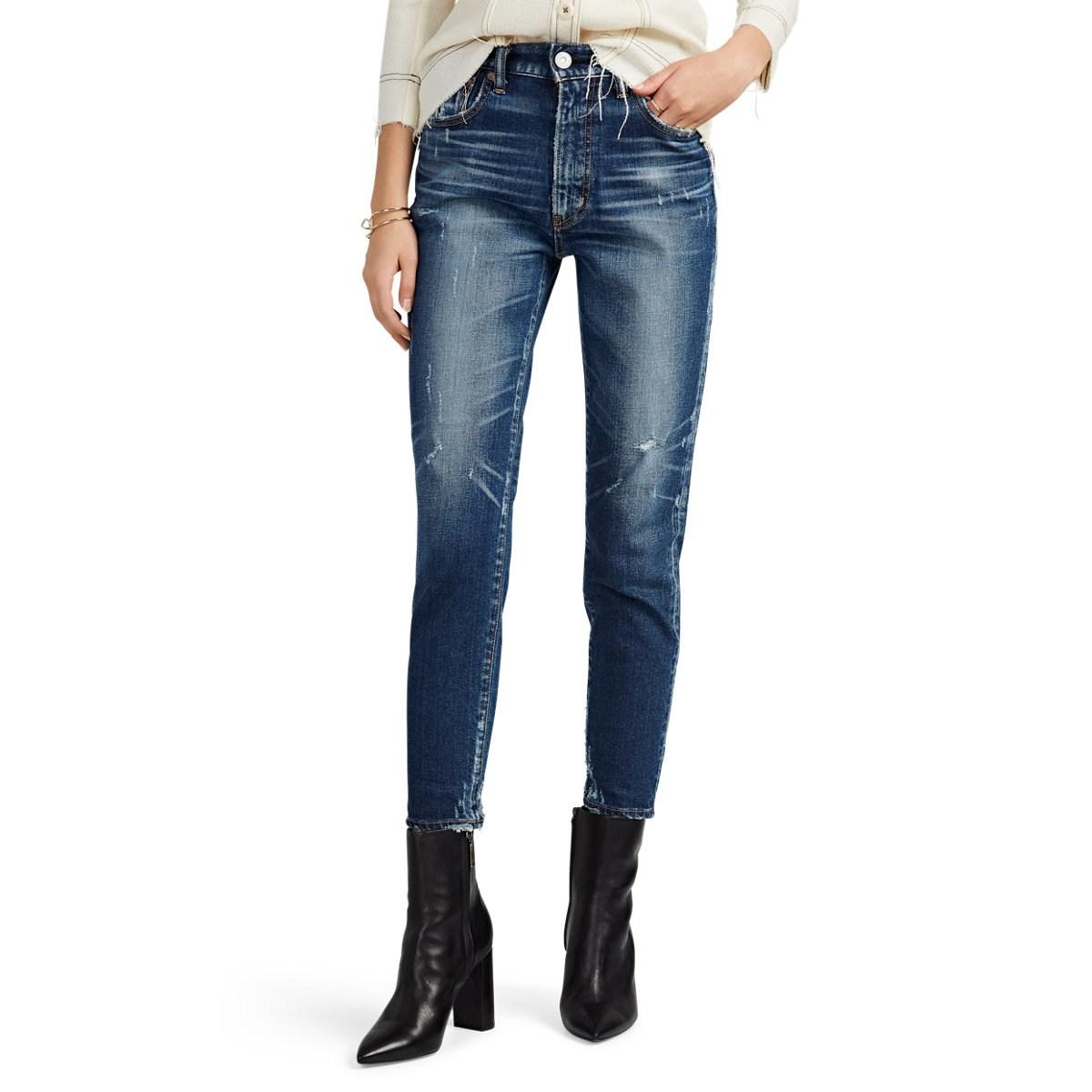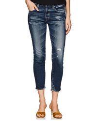 Moussy Vintage's Velma skinny jeans are constructed of navy cotton denim. Designed to sit at the waist, this style is distressed with rip details and fraying. Sits at waist. Slim through hips and thighs. Whiskering. Train tracks. Honeycombs. Fading. Fraying. Rip details. Five-pocket style. Belt loops. Leather logo patch at back waist. Matte silvertone and oxidized coppertone logo-detailed hardware. 10.0 rise, 26.5 inseam, 10.0 leg opening (approximately). Zip fly. Button closure. 99% cotton, 1% spandex. Machine wash. Made in Japan. MOUSSY VINTAGE Women's Velma Skinny Jeans - Blue Size 24 A great designer gift. Shop MOUSSY VINTAGE at Barneys New York. Color: blue