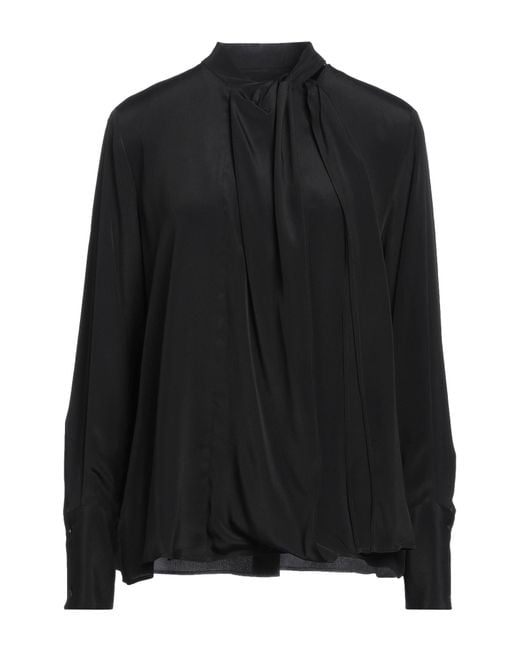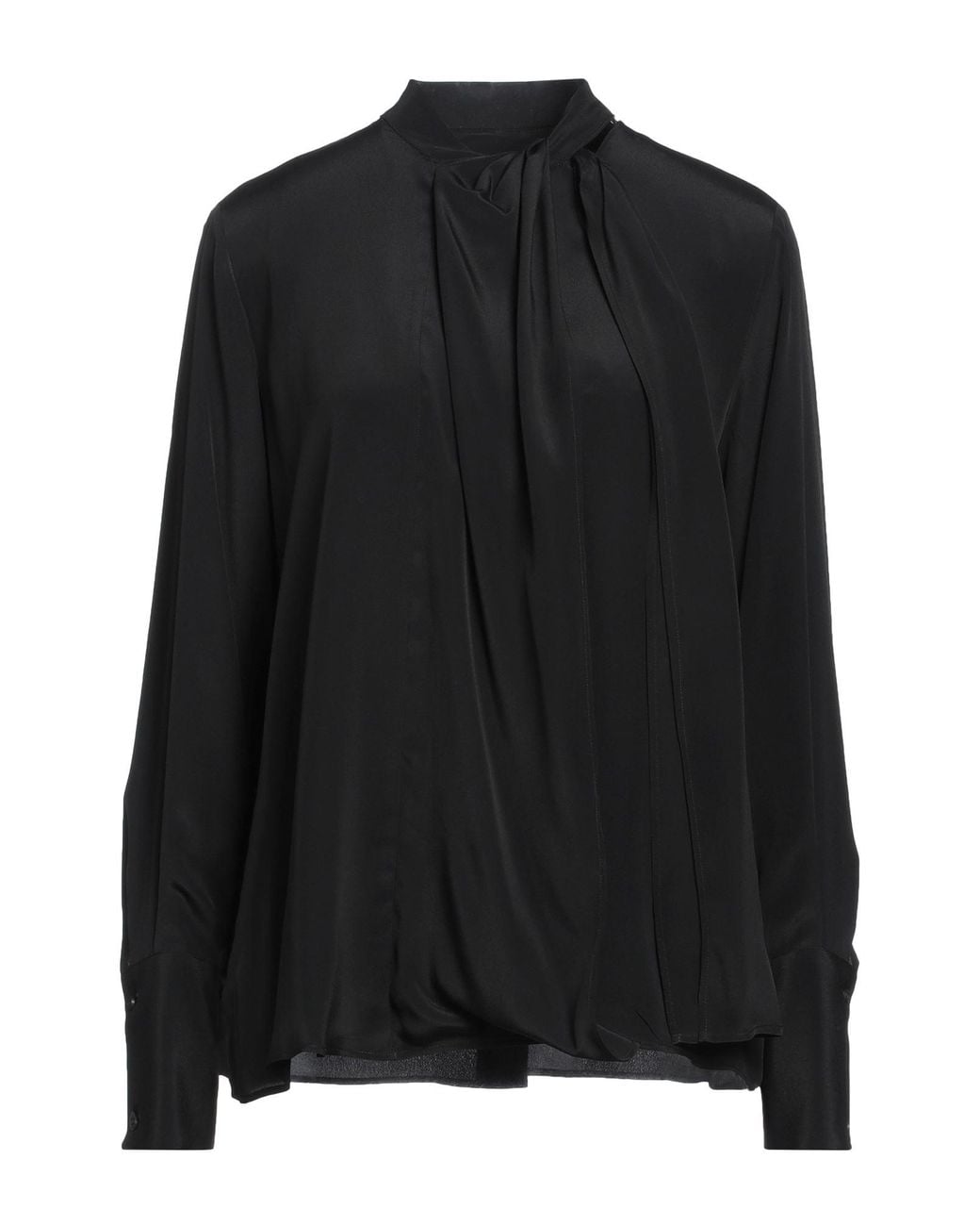 Top, crepe, no appliqués, solid color, mandarin collar, long sleeves, button fastenings, no pockets , Color: Black , Size: 4