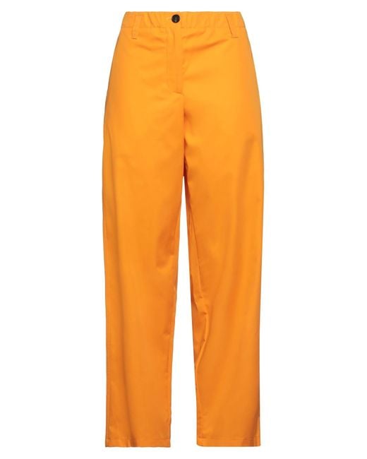 Wide-leg pants, twill, solid color, brand logo, high waisted, elasticized waist, regular fit, zipper fastening, welt pockets, patch pockets, dry clean, do not bleach, do not tumble dry , Color: Orange , Size: 4